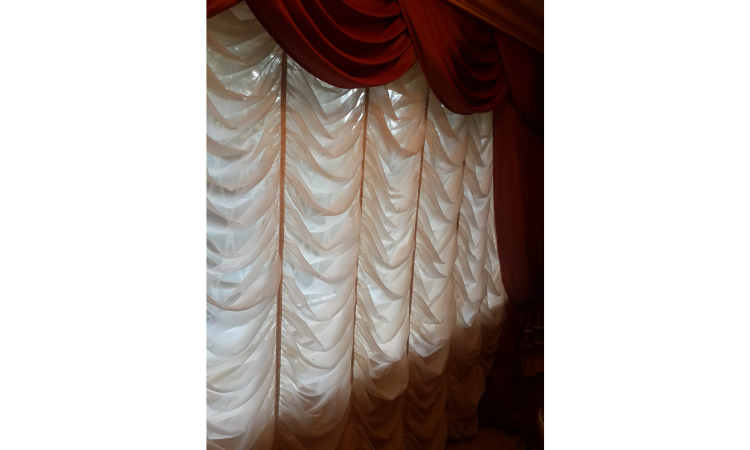 Salon ve yatak odaları için ideal bir seçenek olan bu model, kenarlarının içe çekilmesi sayesinde, sağ ve sol kenarlara sabit panolar uygulandığında daha şık bir görünüm sağlar. Ayrıca, büyük sahnelerde kullanılacak kumaşlardan üretilir ve motorlu mekanizmalarla desteklenir. Tavan montajı için 10 cm genişliğinde bir yer kaplaması gerektirir.